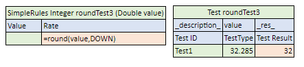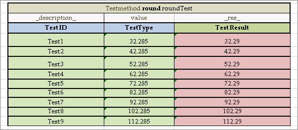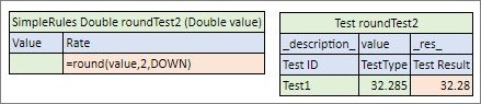 Rounds to the fractional number and enables to get results different from usual mathematical rules: - The first int stands for a number of digits after decimal point. - The second int stands for a rounding mode represented by a constant, for example, 1- round_DOWN, 4- ROUND_HALF_UP. The corresponding string value, such as DOWN, can be used instead of the second int. |