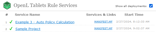 The manifest file is available in OpenL Rule Services, on the main page, for each deployed service.